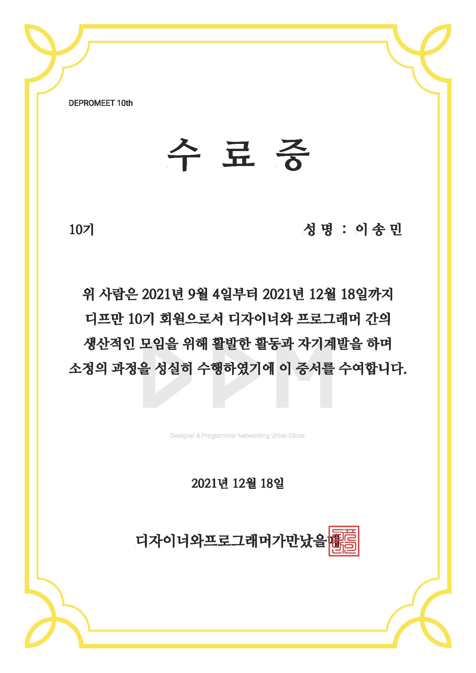 나는 디프만의 "디자이너와 프로그래머의 동반성장"이라는 슬로건(?)의 "동반성장"이라는 키워드가 마음에 든다. 대학 시절부터 교직이수 과정을 선택할 만큼 교육과 성장을 나누는 것에 대한 관심이 많았다.