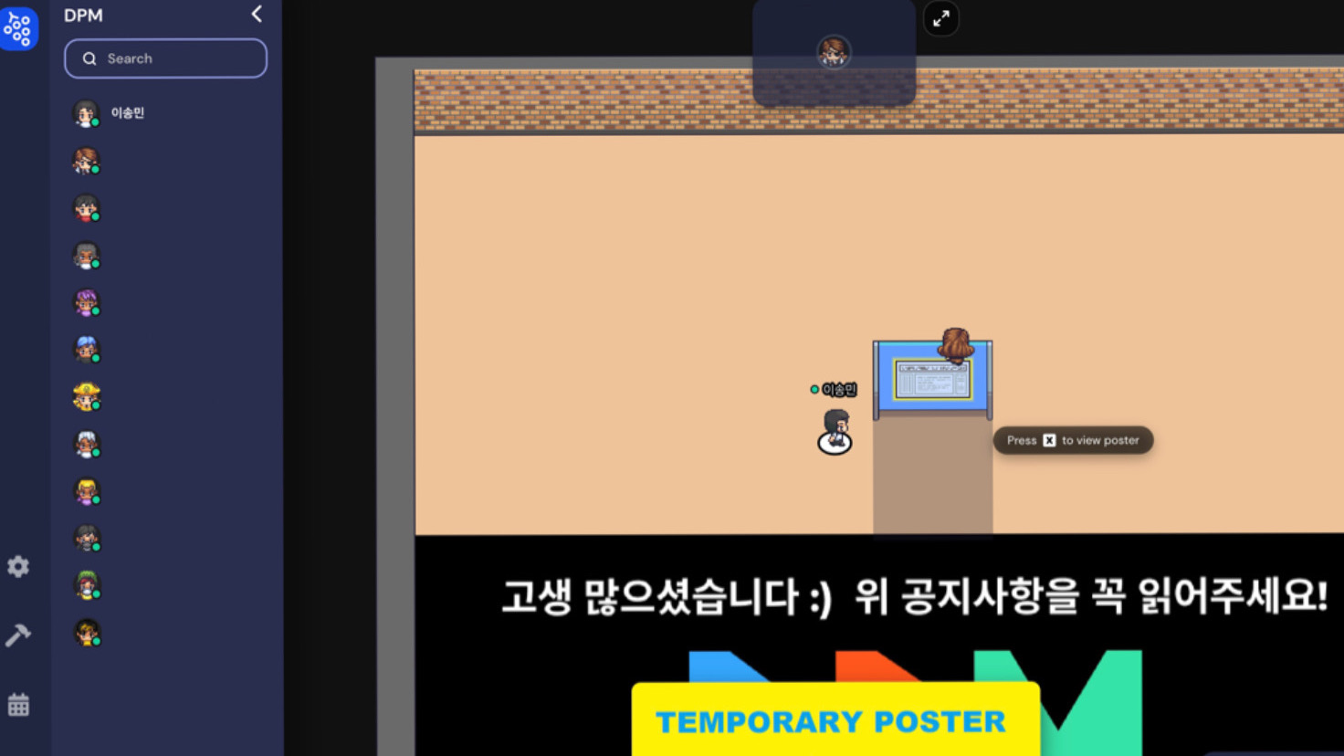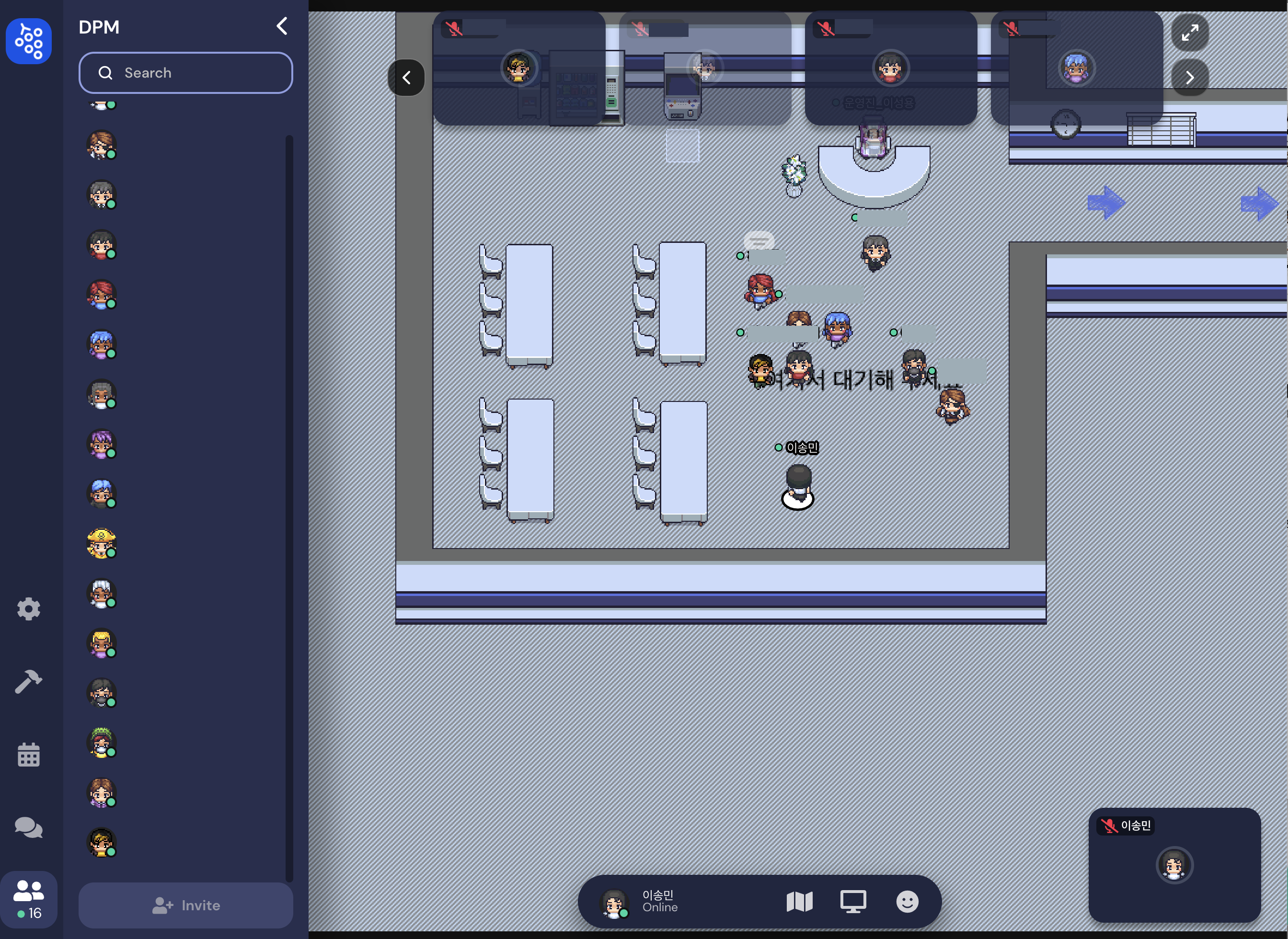 11기 면접도 게더타운에서 진행됐다. made by 게더 전문 디자이너 쿠심 11기 멤버가 모두 확정되고 난 후에도 운영진들은 서류와 면접에서 확인한 멤버들의 성향과 디프만에서 얻고 싶었던 성장의 방향 등을 고려하여 팀을 구성하고, 설레는 OT를 준비하느라 여전히 분주하고 분주했다. (현생 지켜..)
