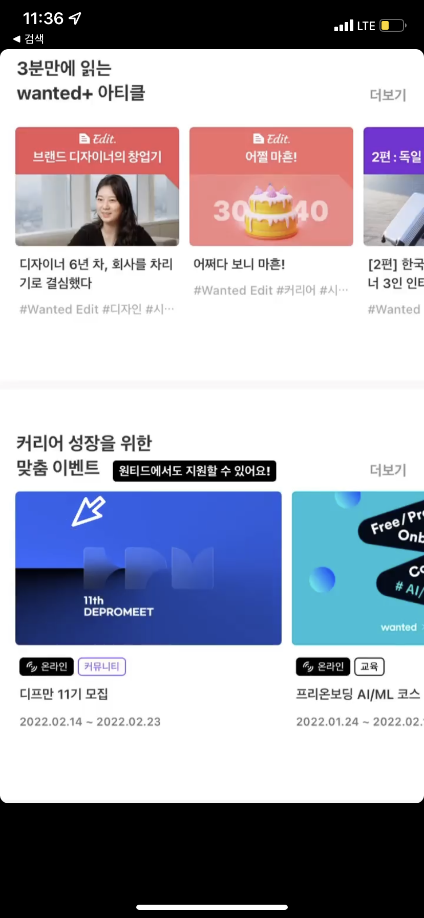 같이 운영진에 지원했던 디자이너 친구와 함께 11기 브랜딩을 진행하고 모집 콘텐츠를 제작했다. 디프만 홈페이지, 인스타그램, 페이스북. 그리고 원티드에도 커리어 성장에라는 섹션에 모집 컨텐츠를 발행했다!