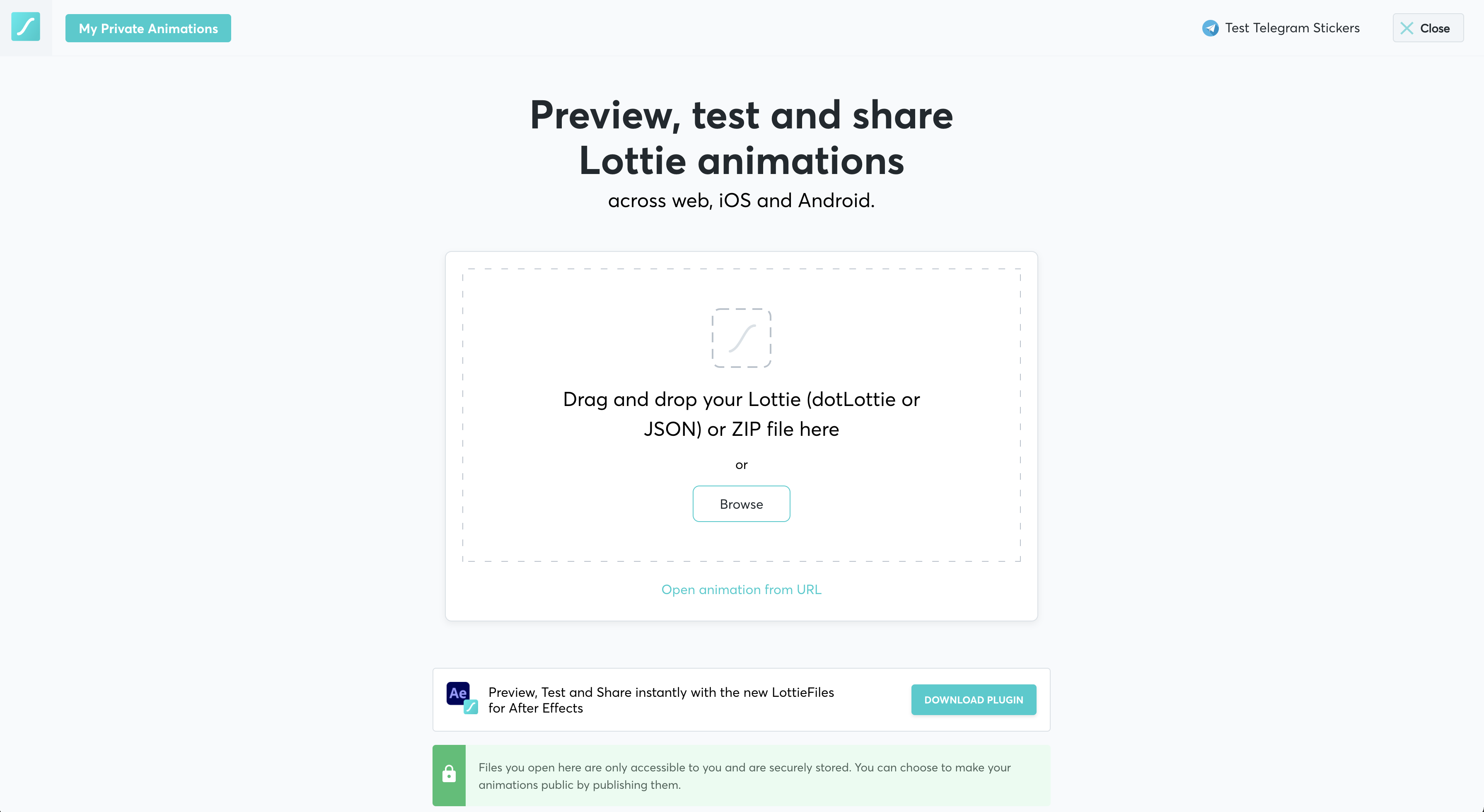 https://lottiefiles.com/preview에 업로드하면 웹에서 프리뷰를 확인할 수 있다.